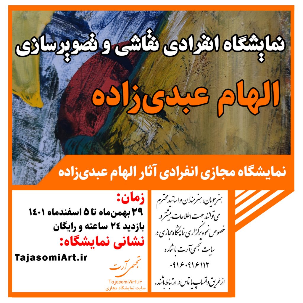 آثار الهام عبدی‌زاده، از ۲۹ بهمن‌ماه تا ۵ اسفندماه ۱۴۰۱ در سایت تجسمی آرت به صورت مجازی برگزار خواهد شد.