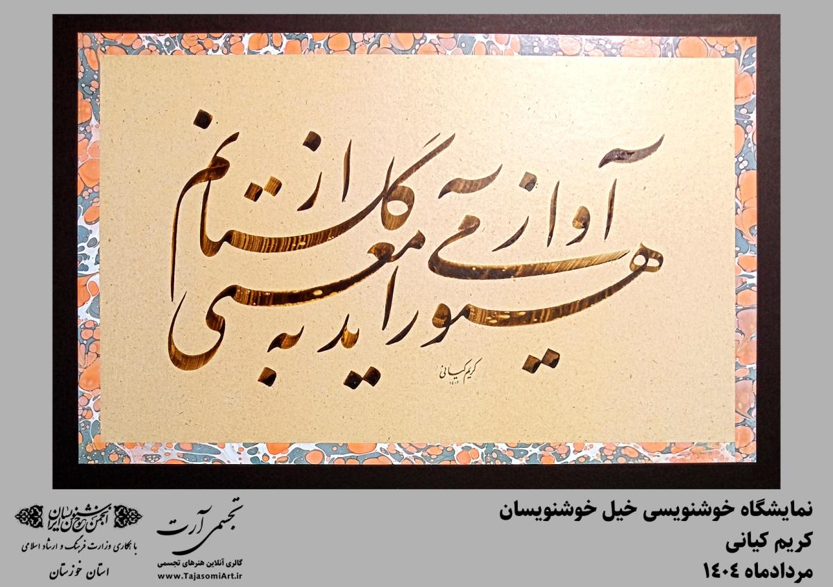 درودوسپاس اساتیدخوشنویس واقعا فرزند هنراین سرزمین هستید…ودرودبراستاد کریم کیانی که کار وخط این هنرمند عزیز آرامش خاص دارد وبی نظیر است