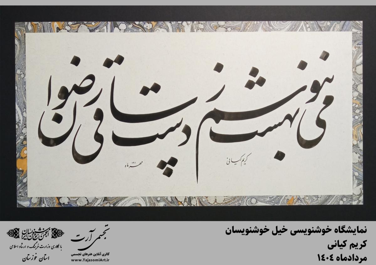 درودوسپاس اساتیدخوشنویس واقعا فرزند هنراین سرزمین هستید…ودرودبراستاد کریم کیانی که کار وخط این هنرمند عزیز آرامش خاص دارد وبی نظیر است