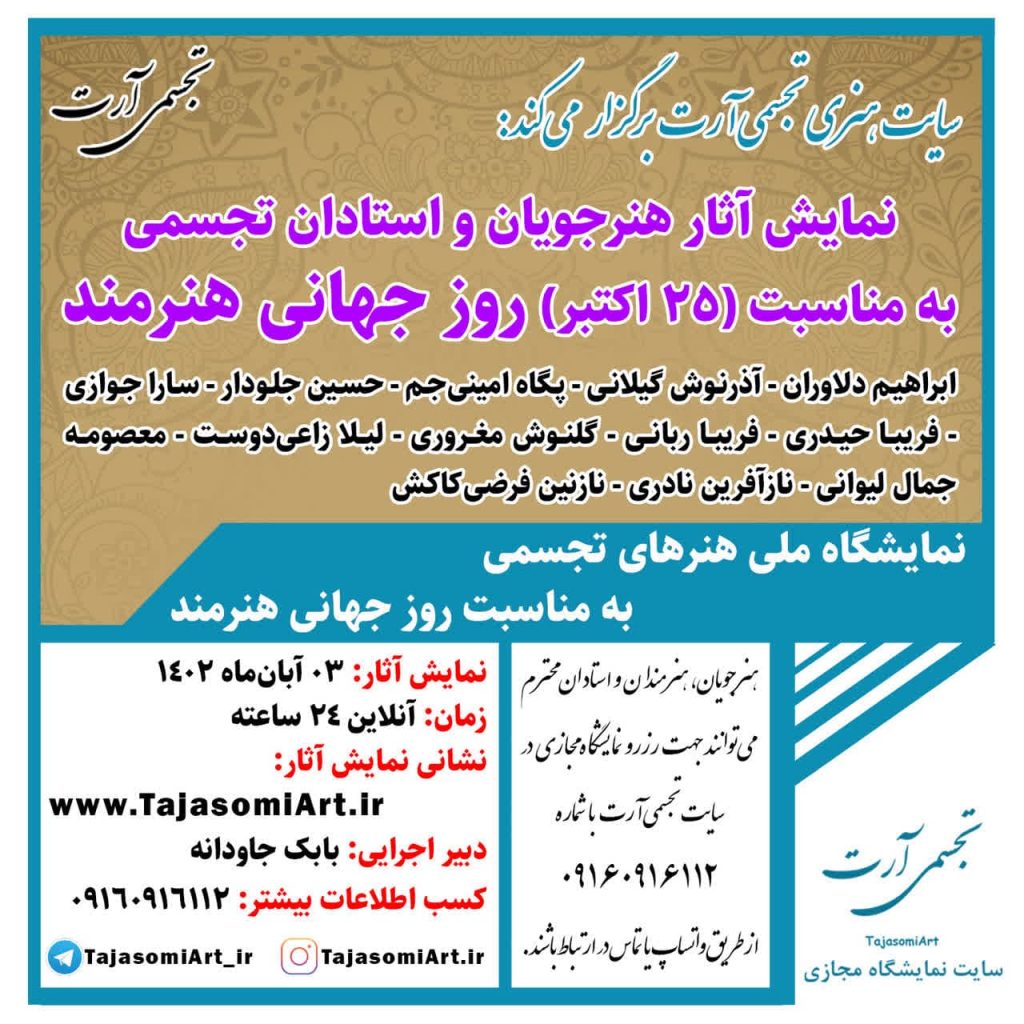 این نمایشگاه از ۰۳ آبانماه ۱۴۰۲ ( به مناسبت روز جهانی هنرمند ) در سایت تجسمی آرت برگزار خواهد شد.