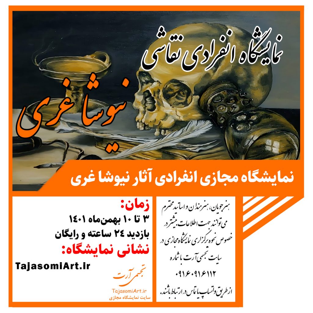 نمایشگاه مجازی انفرادی آثار نقاشی نیوشا غری، از ۳ تا ۱۰ بهمن ماه ۱۴۰۱ در سایت تجسمی آرت برگزار خواهد شد.