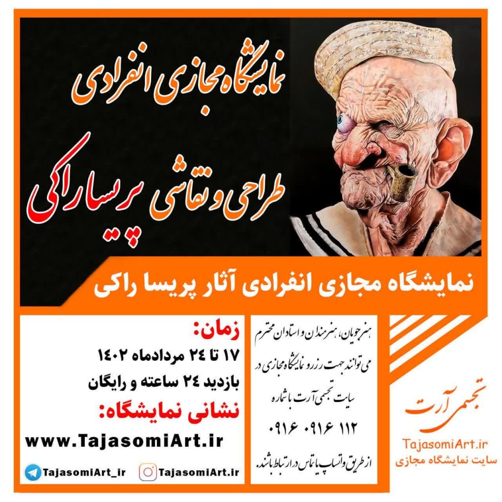 در این نمایشگاه مجازی تعداد ۱۶ اثر از پریسا راکی به نمایش گذاشته خواهد شد.