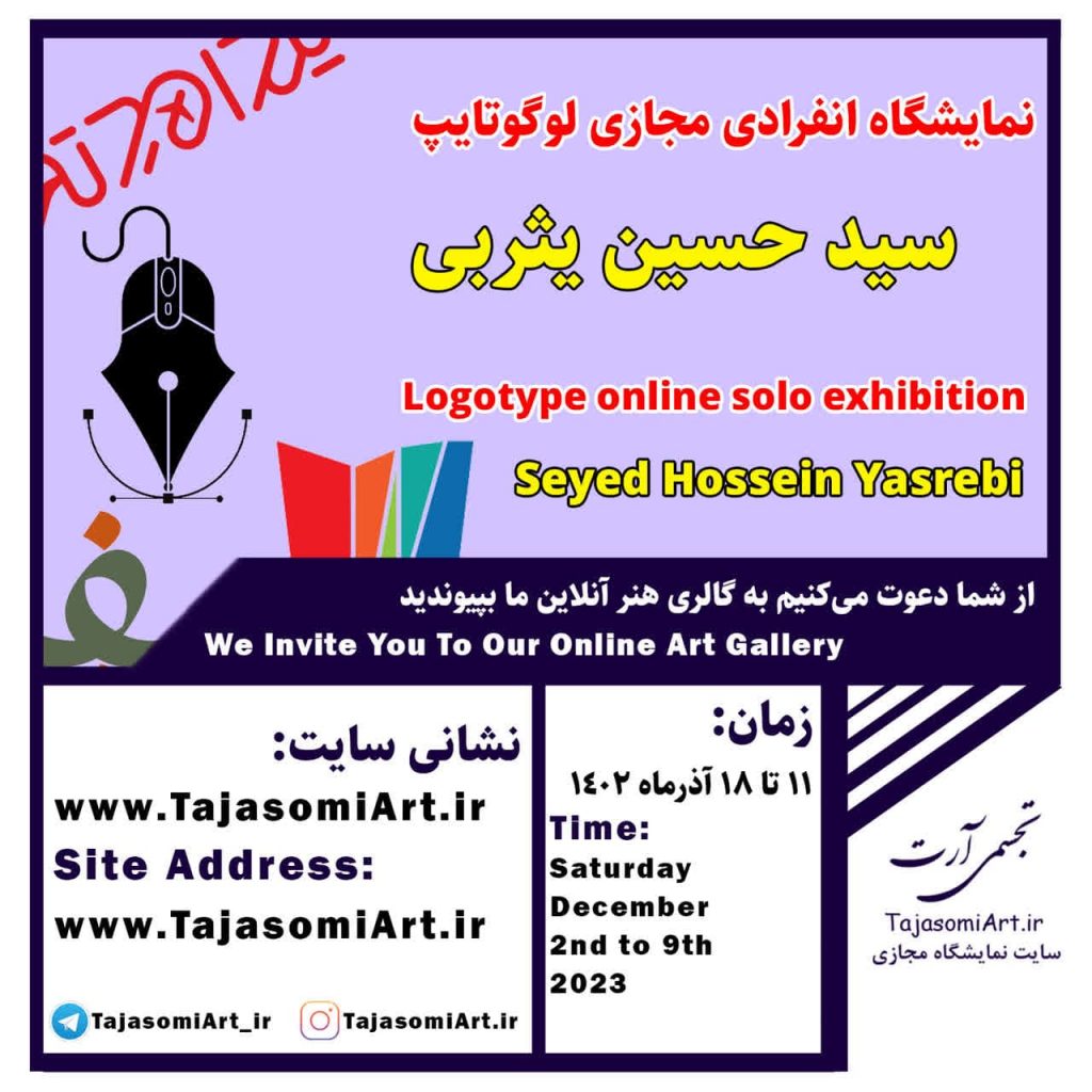 Solo logotype online exhibition The exhibition of Seyed Hossein Yasrebi works will be held from Saturday December 2nd to 9th, 2023 at the Visual Art site. In this virtual exhibition, 16 works of Seyed Hossein Yasrebi will be displayed. Visual Art invites all art lovers to visit this virtual exhibition. Visual art patron of art and artist